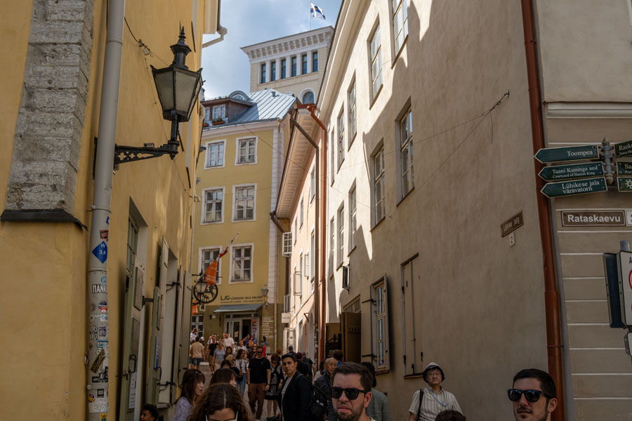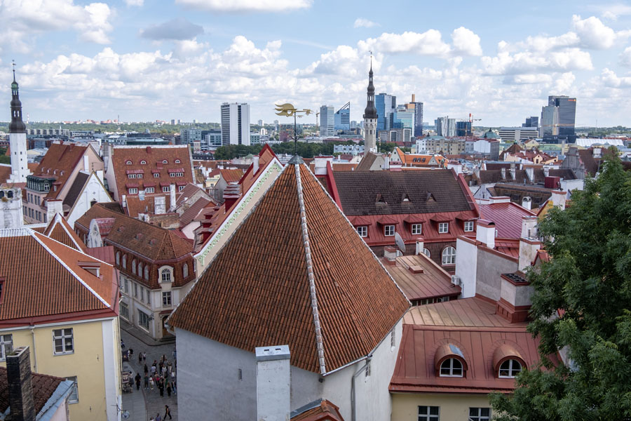 小国エストニアの首都タリン(人口35万)に入るフライトは少なく。経路変更でコペンハーゲンから一旦南下し、オランダのアムステルダムで乗り継いでタリンに着いたのは午後2時だった。昼食抜きで旧市街に直行、1時間半足らずで観光スポットを駆け巡り、バスに戻って「ものタリン」のオヤジギャグがとんだ。