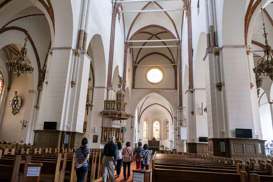 予定の旅程を回復し、リガの市街観光へ。13世紀にドイツの商業都市として起き、16世紀から19世紀にかけてポーランド、スウェーデン、帝政ロシアの支配下で発展し、帝政ロシア時代はロシア第三の都市になって「バルトのパリ」と呼ばれた。ソ連時代に荒廃して「零落した貴婦人」のあだ名がついたが、1991年の独立以降復旧に努め、旧市街の美しい街並みが蘇った。新市街の19世紀後半にヨーロッパを席捲したアールヌーヴォー(新芸術様式)の建築物も目をひく。