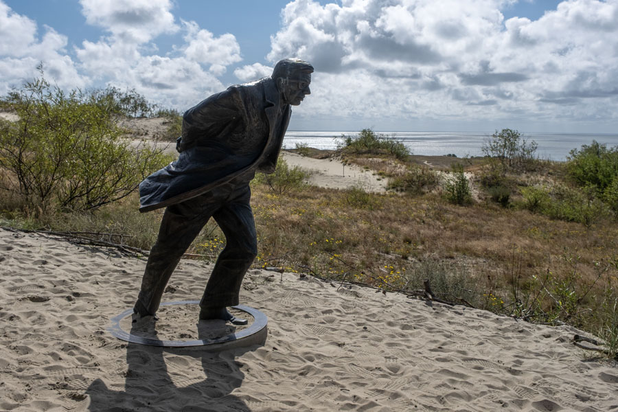 クルシュー砂洲は京都の「天橋立」を100倍大きくしたと思えばよい。クライペダからフェリーで砂洲に渡り、南下してロシア国境の砂丘でロシア側を眺め、国境の町ニダで伝統の魚料理を楽しむ趣向で、帰途にこの地を愛したドイツの文豪トーマス・マンの別荘を訪れた。