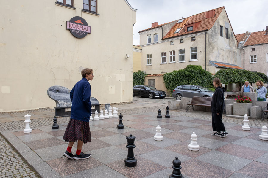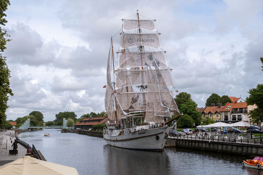 クライペダはバルト海に面した港町。13世紀からドイツ領の商都として発展し、第一次大戦後の1921年にリトアニアに編入されたが、ナチス時代に再びドイツの支配下に置かれ、ドイツの降伏直後にソ連に占領された歴史を持つ。ソ連時代はバルト海東岸の不凍港として重要視され、造船所や漁業に多くのロシア人が流入し、今もロシア語が多く使われている。ちなみに三国通しの我々のバスの運転手はロシア語使いで英語がダメだったが、三国の人の多くが数ヵ国語を話すので用が足りるらしい。カナウスから先の男性ガイドは7ヵ国語を自由に使えるという。(彼の知的な日本語に感服)。