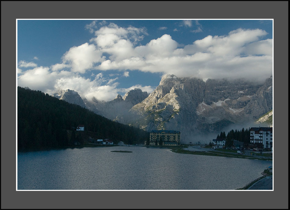 コルチナ・ダンペッツオから山道を1時間走ると、「絵にかいたような」湖の景色が現われた。1956年オリンピックでスケート競技会場になったミズリーナ湖だ。この時のスケート競技に参加した日本選手はスピード競技の5人で、最高位は11位だった。フィギュア競技には出場していない。