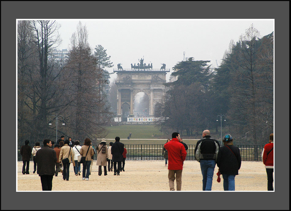 小生はパリの凱旋門を見たことがないが、似ている。それも当然で、両方共ナポレオンが自身の戦勝を祝うために建設を命じたもの。彼は完成を見る前に失脚し、代わって統治者になったオーストリア・ハプスブルク家が1838年に完成させた。凱旋された側のイタリア人に鬱屈した気分が残りそうだが、領主が入れ替わるのはヨーロッパの常で、今もわだかまりなく「平和の門」(Arco della Pace)と呼び、今回のオリンピックで聖火(平和の象徴)の設置場所に選んだ。