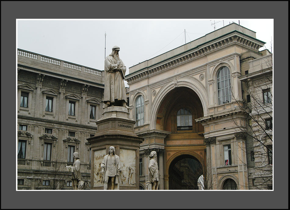 ドウーモ広場からガレリアを抜け、スカラ座前の広場に出たところに、レオナルド・ダヴィンチの像がある。何をやっても優れた才能を発揮する天才が稀にいるが、ダヴィンチは桁外れで、Wikipediaの記述を借りれば(以下引用)、芸術家でありながら博学者、科学者、占星術師としての一面も持ち、更に、鏡文字、音楽、建築、料理、美学、数学、幾何学、会計学、生理学、組織学、解剖学、美術解剖学、人体解剖学、動物解剖学、植物解剖学、博物学、動物学、植物学、鉱物学、天文学、気象学、地質学、地理学、物理学、化学、光学、力学、工学、流体力学、水理学、空気力学、飛行力学、飛行機の安定、航空力学、航空工学、自動車工学、材料工学、土木工学、軍事工学、潜水服などの分野に顕著な業績と手稿を残した(引用終り)。それも今から600年も前の、コロンブスが新大陸を発見した時代(日本では戦国時代)だった。ダヴィンチの飛びぬけた才能に、改めて驚く。