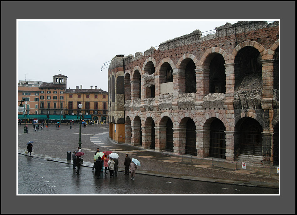 ミラノからベネツィアへ移動の途中、ヴェローナの円形闘技場(コロッセオ)に立ち寄った。円形闘技場=ローマと思い込んでいたが、ヴェローナの方が少し前の紀元ゼロ年前後に完成していた。用途は同じで、ローマ時代は剣闘士同士の死闘や猛獣との死闘の興行が行われ、中世は異教徒の公開火刑場になった。人間を殺傷する現場を大衆相手の見世物にするのは、現代人のセンスでは考えられないが、戦争の狂気が生じれば再現しないとも限らない。